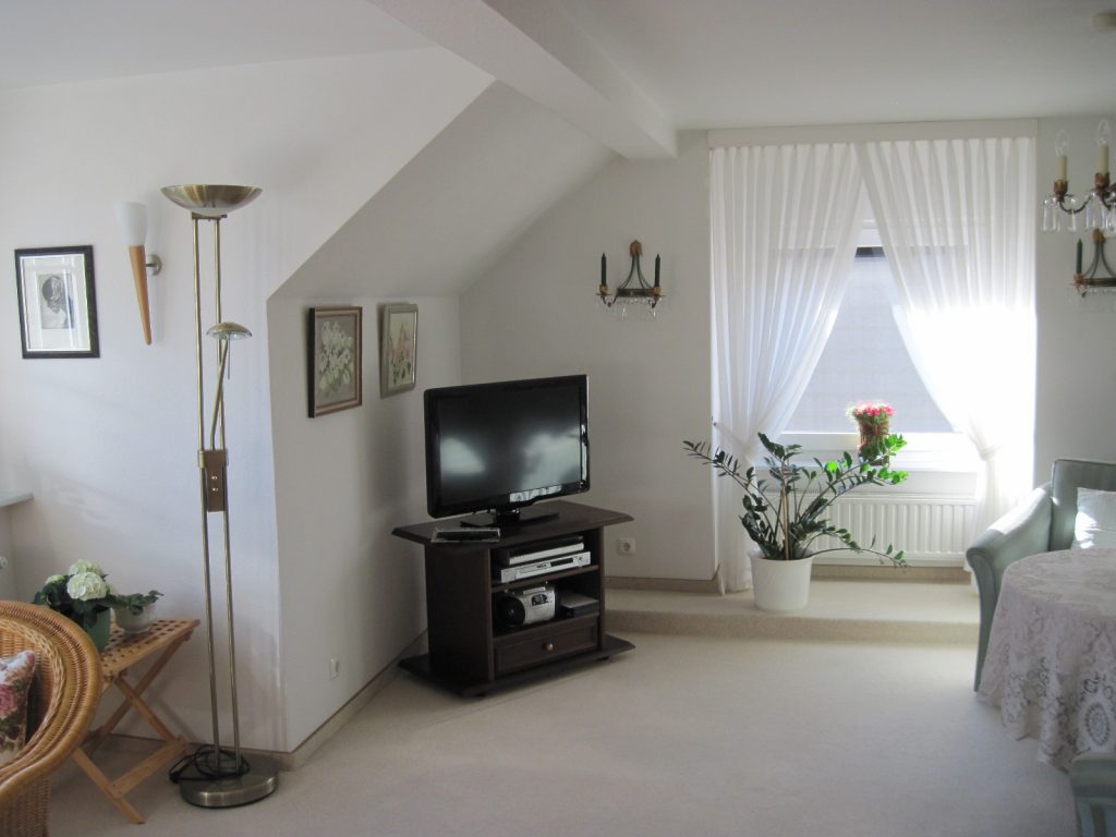 Die ca. 50 m2 Fewo ( Wohnzimmer, Pantry, Schlafzimmer, Vollbad mit Duschabtrennung, Parkplatz an der Strasse vor dem Haus,Waschmaschine und Trockner nach Absprache…)ist voll ausgestattet. Sie brauchen sich weder um Bettwäsche, Handtücher noch um Geschirr zu kümmern.